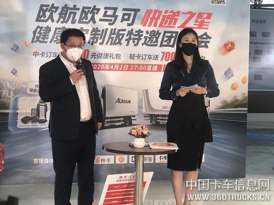 4月2日,欧航欧马可快递之星健康定制版特邀团购会在超级卡车体验中心圆满举行,欧航欧马可联手京东物流、京驿货运打造的欧航欧马可快递之星健康定制版车型也在此次活动中正式发布,同时以网络直播的方式,助力广大卡车用户线上交流、优惠购车。