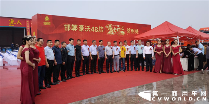典礼现场,中国重汽豪沃石家庄分公司,潍柴动力石家庄办事处,法士特河北办事处,山东豪沃金融,山重租赁,泰安五岳,青岛重工等相关企业负责人,社会各界人士、媒体朋友近500人共同见证了这场隆重的开业仪式。