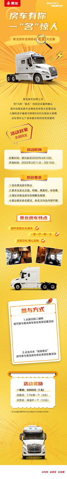 乘龙房车即将上市,房车有你,一名惊人,乘龙房车全网命名有奖大征集