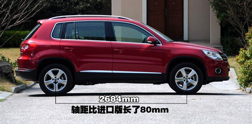 除了采用美版新款车型的前脸造型,国产途观相比海外Tiguan车型,最重要的变化就是针对中国市场进行了加长,国产车型的轴距为2684mm,相比海外车型增加了80mm