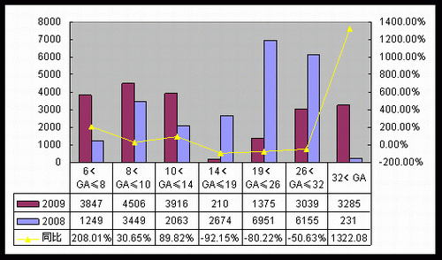 2009年1—5月华北地区共销售重型货车20178辆,同比下降11.39%,其中6~10吨的火车销量最大,达到4506辆,同比增长30.65%,其次是10~14吨位的火车货车共销售3916辆,同比增长了89.82%。下降幅度最大的是14~19吨位的货车,仅销售210辆,同比下降92.15%。32吨以上货车增幅最大,达到1322.08%,销量为3286辆。