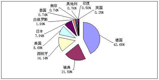2008年12月货车主要进口国家市场份额
