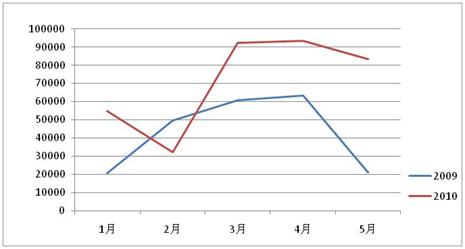 5月份全国商用车产销环比下降,同比大幅增长。 5月份,全国商用车生产36.20万辆,环比下降17.93%,同比增长34.36%;销售30.89万辆,环比下降21.76%,同比增长45.52%。1-5月份,商用车累计产销分别为186.46万辆和147.50万辆,比去年同期累计分别增长47.92%和54.04%。从商用车库存周期来看,1-5月份商用车库存周期逐月分别为45天、45天、49天、47天和47天。整体来看,2010年5月份商用车市场交4月份有所下滑,但从历年商用车产销情况来看,5月份为每年商用车销售淡季,今年5月份商用车市场同比依然实现了较大幅度的增长。