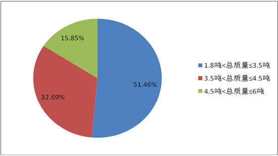 从细分市场上看,1.8吨<总质量≤3.5吨同比增长41.08%,高于轻卡行业增长率;3.5吨<总质量≤4.5吨同比增长39.2%,4.5吨<总质量≤6吨同比增长25.25%。所占比重为: