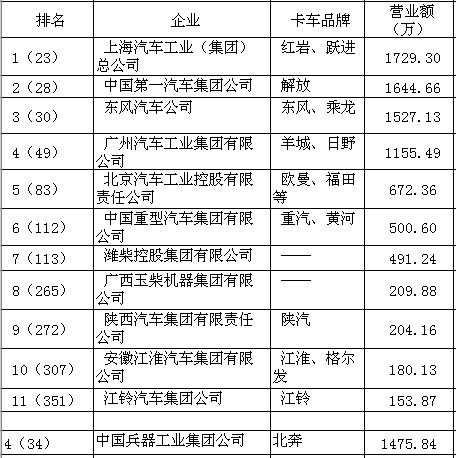 中国企业500强出来了,来看看卡车企业实力(顺便加发动机企业)的排名吧,名单只有集团,没有到具体的卡车公司,供参考参考。