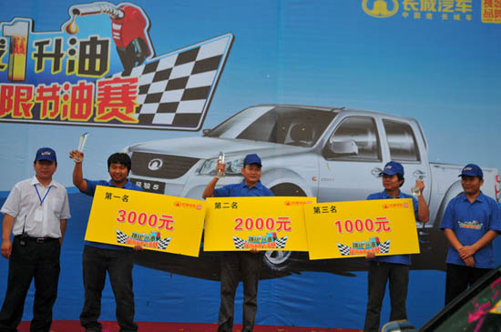 2010年6月25日,风骏皮卡“挑战一升油——极限节油赛”在宁波顺利落下帷幕。20位风骏皮卡用户报名参加了本次极限节油大赛。经过激烈角逐,最终卢茂飞、舒群福、周道安分获冠、亚、季军。冠军获得者以1升油跑出了28.8公里惊人成绩,验证了风骏科技节油的实力。