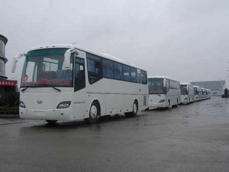 据悉,该批车销售订单100台、销售收入1个亿,属顶级豪华客车,本次发车仪式是前期1000万的交付。这批车的车型为SR6115TH-UD-I,车身长11米。底盘、发动机、变速箱、前后桥等主要零部件的采购,利用全球采购系统精选世界知名品牌,品质优良,安全可靠。针对阿联酋炎热的气候,该车内饰件全部采用耐高温材料,空调为日本富士独立空调,即使发动机故障也可独立运行,制冷效果好,可靠性高;整车为桁架式结构,大行李仓,配置高档车载视听系统、冷热饮水机、冰箱、急救包等,座椅宽大并可前后左右调节,适合中东人高大的体型。