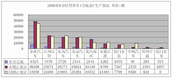 2009年9月轻型客车(含底盘)产销情况