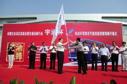 8月17日起,来自内蒙古12个地区的38名交通运输业驾驶高手,将在青城呼和浩特展开一场“节能驾驶”的精彩较量,首届全国交通运输行业“宇通杯”机动车驾驶员节能技能竞赛内蒙古赛区选拔赛的帷幕由此拉开。当天上午,活动开幕式在内蒙古国际会议展览中心广场上盛大举行,自治区交通厅副厅长姜革锋、交通专业人员资格评价中心副主任杨利华、宇通集团党委副书记饶金有等有关领导出席仪式并讲话。