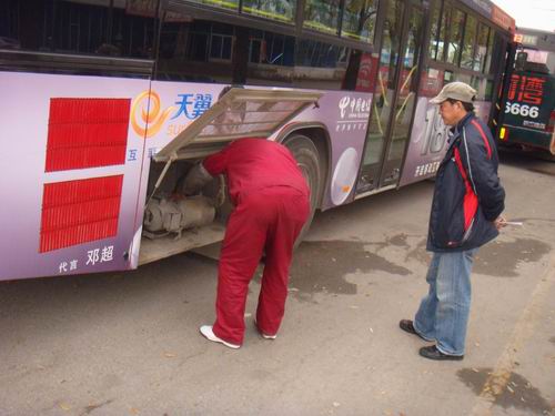 10月10上午,宇通辽蒙大区售后人员带领当地宇通服务站以及暖风机厂家的驻当地的服务人员,以及必要的配件,同时也带着着宇通人对客户的深切关怀,来到呼伦贝尔市车站广场,这里是宇通ZK6820H型公交车的始发站。