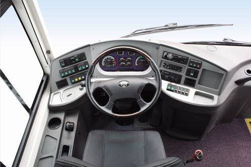 O418客车除上述磁悬浮技术的四大特点外,驾驶区域空调独立供给系统、前风挡玻璃全方<