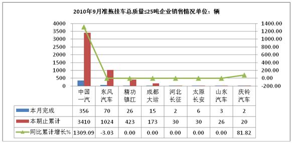 2010年9月准拖挂车总质量≤25吨企业销售情况 单位:辆