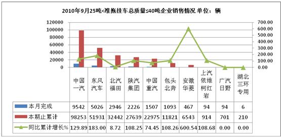 2010年9月25吨<准拖挂车总质量≤40吨企业销售情况 单位:辆