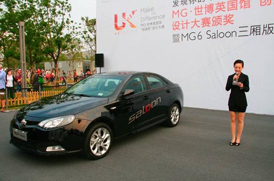 和MG6 Saloon揭幕仪式同时进行的,是历时三个月风靡中国草根创意人群的MG“创造粒”设计大赛的颁奖仪式。由两名年轻中国设计师设计的作品——“神奇的呼吸”和“驿站”,有幸摘得最终大奖。在此次活动中,上汽集团还特地为此次与英国馆的合作精心打造了 “MG6 Fastback Limited”(世博英国馆限量版MG6),留下了永久的创意结晶。该车汲取了英国馆的创意灵感,融合最为新潮的设计元素,通过大胆运用内饰色彩的反差搭配,呈现出UK Design个性的格调,为那些热衷炫耀英伦气质的客户,带来难得一遇的英伦汽车设计收藏品。最重要的的是,当英国馆在世博会结束拆除之后“MG6 Fastback Limited”将是英国馆留下的“唯一永恒的和值得纪念的礼物”。