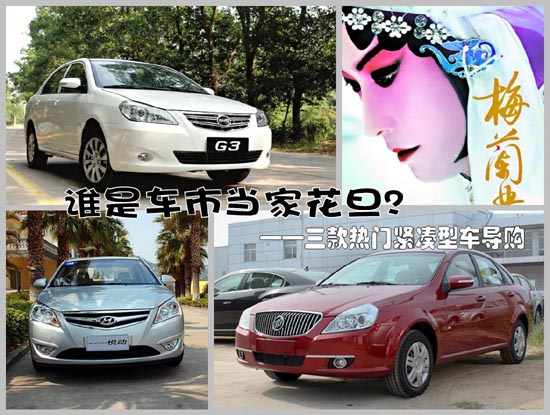 花旦,是中国戏曲旦行中的一支。扮演的多为天真烂漫、性格开朗的妙龄女子。所谓“当家花旦”,指的也是善演这样角色的演员。如果把国内汽车市场比作戏曲的舞台,那么紧凑型家用车级别所联袂演出的就是一出大戏,谁能长袖善舞,赢得台下观众的叫好,依靠的并不是俊秀的扮相、婉转的唱腔和优美的台风,而是时尚大气的外观、精致典雅的内饰,强劲澎湃的动力,说到底,就是品质过硬。下面推荐三款热门车型,分别是比亚迪G3、悦动和新凯越,看谁能担当起紧凑型车市“当家花旦”的名号。