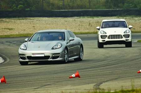 路演分为紧急制动、绕桩、越野体验和赛道试驾4个项目,虽然都是些常规项目,但是当由保时捷来演绎时,却又有着别样的感受。在紧急制动中,百公里提速仅有3.4秒的911 turbo让你在感受加速度的眩晕状态下,仍然能准确无误的将车停留在安全道路上;在倾斜度达到45度左右的斜坡上,新款cayenne充分展现出它毫不逊色的越野功底和更为便捷的新功能设备,即便是小记这样从未进入越野赛道的女生也能轻松驾驶;boxster在绕桩项目中游刃有余;最刺激的要数最后的赛道体验,有着赛车梦想的普通人有了一个可以在专业赛道尽情撒野的机会。