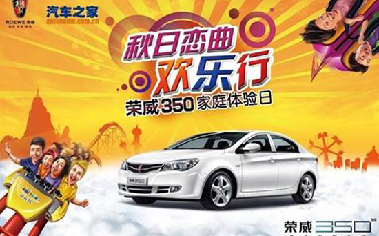近日,在荣威350联合汽车之家网站即将联手举行“秋日恋曲欢乐行”荣威350家庭体验日活动。在这项活动中,参与其中的网友可以通过驾车出行以及竞赛环节设计,切身体验荣威350的魅力以及inkaNet诱人的实用功能。对于单身的朋友,更要抓住这个机会哦!和异性网友组建临时家庭,交友拿奖两不误!