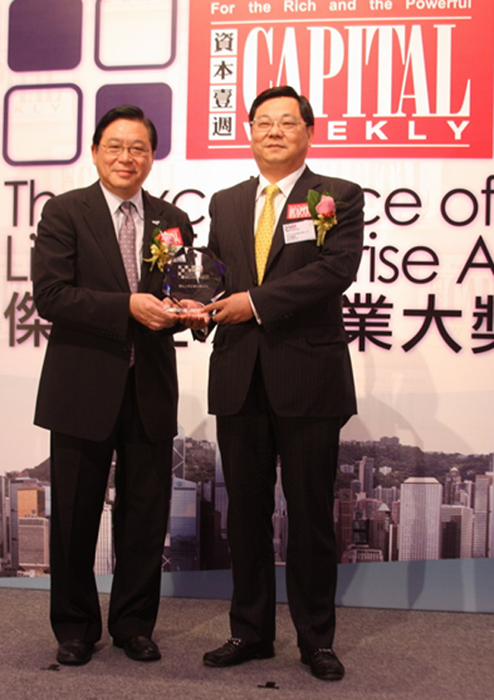 图一:桂生悦总裁(右)从杨伟雄博士(左)手中接过大奖