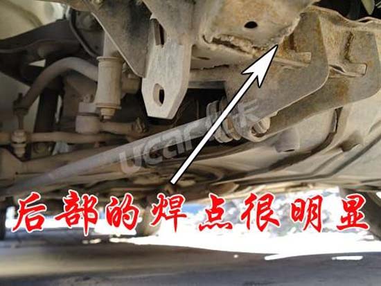 这辆车的后部悬挂都有过修复的痕迹,焊点很明显。
