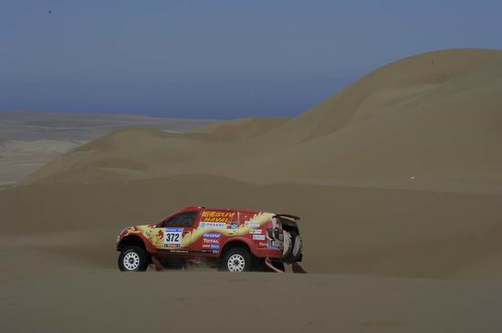 在中国车手当中,这一天过得波澜不惊。哈弗SUV龙腾车队的车手周勇继续刷新自己的赛段最好成绩,继第5赛段的第20和第6赛段的第17之后,第7赛段,他的成绩是第15名,这也是中国车手的最好赛段成绩。在总排行榜上,他的成绩已经提升到了第19名。熟悉达喀尔拉力赛的车迷们都记得这个数字,这是中国车手在达喀尔拉力赛上的最好成绩。周勇在2005年第一次参加达喀尔拉力赛创造以后,徐浪在第二年曾经冲刺到同样的位置,此后再也没有中国车手企及。现在,这个纪录的创造者,已经处于刷新这个纪录的上升轨迹之中。