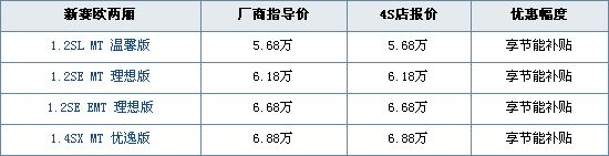 行情分析:新赛欧两厢的上市让新赛欧的产品阵容更加丰富,同时两厢的设计也让后备箱拥有了更强的实用性。而且赛欧的车身尺寸在这个级别中也有一定的优势。新赛欧两厢的内饰与三厢版本基本保持一致,材质和手感一般,但做工要比自主品牌稍微精致一些,而新推出的EMT车型仪表盘设计有些许变化。同时两厢版1.4升EMT车型的配置有所增加,CD+AUX接口均有配备。但也许是合资品牌的成本问题,新赛欧的配置不如同价位的自主品牌车型丰富。