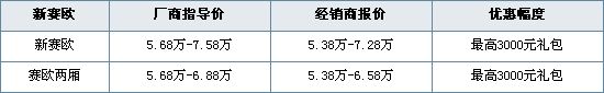 雪佛兰新赛欧是上海通用汽车有限公司针对现今中国家庭用车实际需求全新打造的产品,近日,编辑从长春地区上汽通用雪佛兰经销商处获悉,春节期间购买新赛欧最高可获得3000元礼包,部分车型有现车。详细情况见下表: