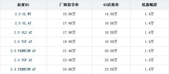 日前,编辑从沪上二级经销商处了解到,上市不久起亚中级车K5目前可享受1.4万元的现金优惠,并赠送精美的装潢大礼包。车源方面,展厅内K5全系基本都有现车,有兴趣的网友可以到店详谈。具体优惠明细如下: