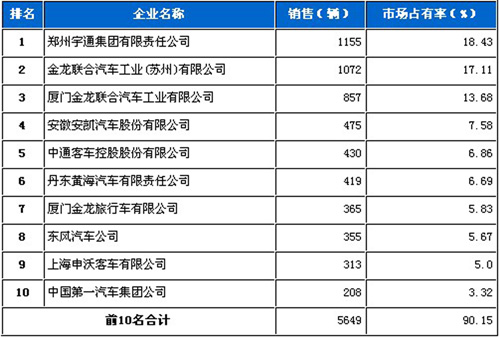 2011年6月大型客车企业销售前十