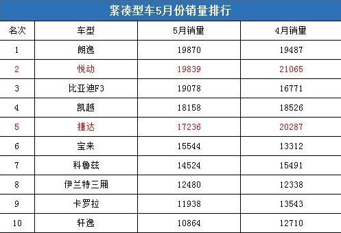 紧凑型车市场销量前十阵营虽然没有历经“大换血”,但几乎所有主销车型销量骤减也少不了让厂商头疼不已。根据乘用车联合信息协会统计数据,5月份紧凑型车销量排行中没有见到月销2万台以上的车型,在厂商调整库存的同时,想必会加大促销力度来提升自身的销量,我们今天为大家带来了销量排行前十名车型的销量、车型推荐和价格走势分析,希望为关注这些车型的消费者带来一些确切的参考消息。