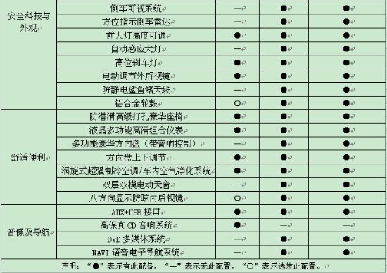 [NextPage]附:L3新锋畅参数配置表