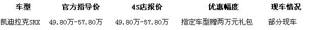 近日,从温州凯特凯迪拉克4S店了解到,目前即日起至9月25日,温州凯特推出"凯迪拉克金秋团购季"活动,购凯迪拉克SRX(报价 图片 参数)指定车型可获赠2万元超值大礼包,只要到展厅客户2人抱团即享团购特价,每天推出超低特价车限量抢购活动,店内有现车。感兴趣的朋友不妨关注一下。详情请见下表: