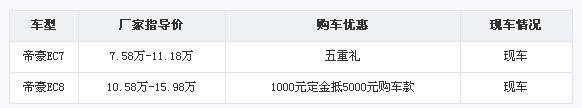 此外,车展期间凡现场订购帝豪EC8,即享1000元定金抵5000元购车款的专属优惠。