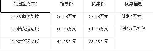 CTS是凯迪拉克的经典之作,自上市之日起就受到一致好评,虽然销量上不能与宝马、奥迪等品牌同档车相比,但美系车自有大气威猛的个性,在消费者中也有不少拥趸。笔者从深圳凯迪拉克经销商处获悉,目前CTS的优惠力度空前,除了现金直降4万元外,购车者还将获赠2万元礼包,现车方面也是比较充足,经销商欢迎消费者到店详询。