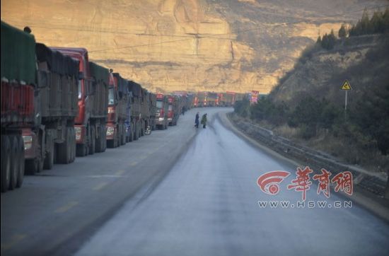 冬季是用煤高峰期,神木县又是煤炭外销陕西第一大县,几条主要承担全县煤炭外运的公路已不堪重负,再加上雨雪天气,使运煤大通道更加脆弱。当生活在大城市的人常抱怨上下班堵车的时候,远在陕北神木县西煤东运大通道上,看着一眼望不到尽头的卡车长龙,常年生活在堵车路上的卡车司机们,心态则稍显平和,这种平和更多是无奈,不堵倒觉得新奇。