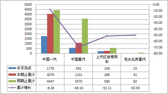 2012年3月半挂牵引车生产26717辆,累计生产66647辆,销售26062辆,累计销售64150辆。