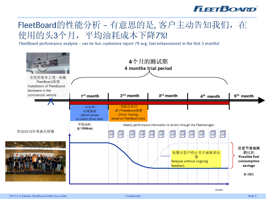 2003年成立的Daimler FleetBoard GmbH是戴姆勒的全资子公司,目前雇有140多名员工。FleetBoard结合了多年的载重车领域经验以及丰富的IT知识,从而通过基于远程信息处理的互联网服务支持货运和物流行业。从FleetBoard服务于2000年面市以来,通过DIN ISO 90012000认证的FleetBoard在50,000多辆载重车中安装了FleetBoard系统。FleetBoard在德国斯图加特注册成立,并通过旗下销售和分销公司(位于斯塔福德郡塔姆沃思的FleetBoard英国公司)在英国开展业务。FleetBoard销售代表是远程信息处理专家,在整个欧洲以及中东、南非和巴西开展业务。FleetBoard一直在发展,并不断扩展产品和服务范围。通过市场领先的标准系统以及其自有的计算机中心,FleetBoard提供非常易于理解和面向未来的解决方案,这些解决方案可以轻松整合到现有的货运程序之中。