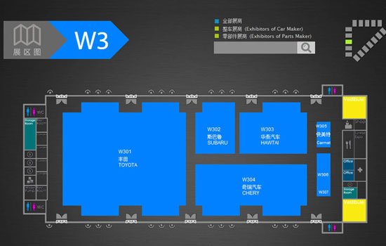 W3号馆: 整车,包括丰田、斯巴鲁、华泰、奇瑞等;