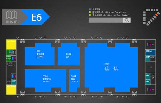 E6 号馆: 整车,包括雷克萨斯、DS、宝马、MINI、腾势、英菲尼迪等