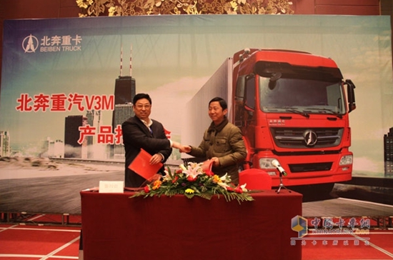 2014年3月13日,北奔重汽V3M车型产品推介会在江苏涟水拉开帷幕。据了解,继首站涟水之后,15日、17日,北奔将陆续在山东临沂、河北石家庄举办V3M产品体验活动,继续通过现场讲解、试乘试驾、优惠促销等形式,让用户切身体验V3M车型优势,促进V3M这一北奔牵引车主力车型在公路运输车市场的开拓。