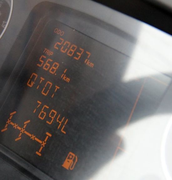 滨海高速路口辅路上一辆红色、白色T5G卡车有序的停靠,高大帅气的车身很远处就被看到。经过了一天的等待,中国卡车网的记者终于与T5G卡车的车主王师傅相见。刚卸完货的老师傅脸上并没有太多疲惫,还很有精神。王师傅邀请记者进入这辆红色座驾,宽敞的卧铺,一个食物篮,两个水杯整齐摆放着,恰有一种家的温馨。点亮仪表盘,里程表上显示20837,燃油总量达到7694L。"这辆T5G卡车运行了3个月,驾驶室、操纵性舒适性与进口卡车差不多,整体性能比国产好得多。"开过7年进口车的王师傅自豪的说到。
