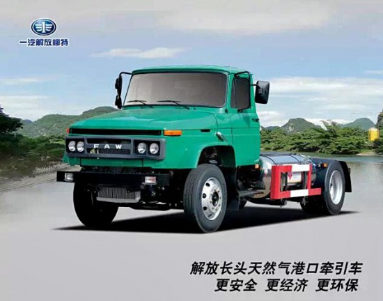解放长头4X2天然气牵引车专门针对港口空集装箱运输设计,动力总成匹配合理,在宁波港口随处可见解放长头绿色动力的身影。