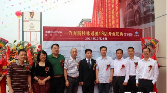 位于桂林市临桂新区的玉柴物流旗下两家子公司——桂林通驰汽车销售服务有限公司(简称通驰公司,经营一汽奔腾)和桂林通拓汽车销售服务公司(简称通拓公司,经营上汽荣威和MG)正式运营。玉柴物流董事长古堂生携领导班子成员齐到桂林共贺开业大吉。