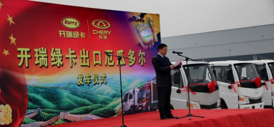 2014年10月31日,开瑞绿卡在生产基地举办了“开瑞绿卡出口厄瓜多尔发车仪式”。奇瑞汽车开瑞事业部总经理杨本宏,开瑞卡车销售公司总经理李建国、厄瓜多尔CINASCAR公司代表等出席了此次发车仪式。