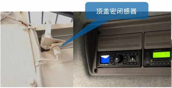 此功能在车辆重载,重车时顶盖未密闭到位,则发出声光警报,车辆只能限速移动。防止因顶盖未密闭到位造成抛洒滴漏。
