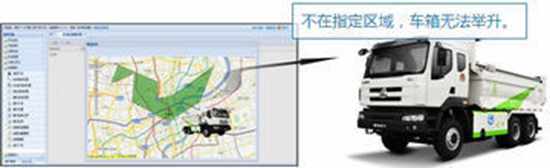 此功能在车辆重载情况下激活,可在平台电子地图上划定电子围栏,设定每台车的卸料区域,只有在指定的区域内,重载车辆才能举升卸料,杜绝渣土车随意倾倒的现象。