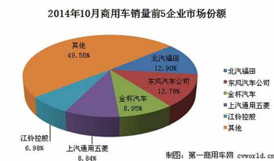 2014年10月国内商用车企业销量前五(单位:辆)