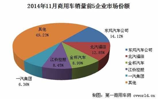 2014年11月国内商用车企业销量前五(单位:辆)