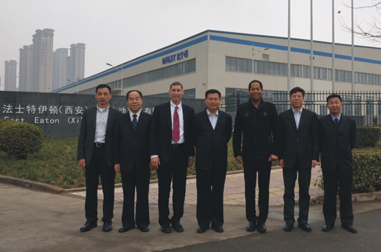 3月5日下午,伊顿公司全球副总裁克瑞格访问法士特公司,集团公司董事长李大开、总经理严鉴铂、副总经理王顺利陪同克瑞格副总裁一行查看了法士特伊顿(西安)动力传动系统有限责任公司的基础建设情况。法士特伊顿合资公司总经理隽小宁详细介绍了工厂建设发展情况。