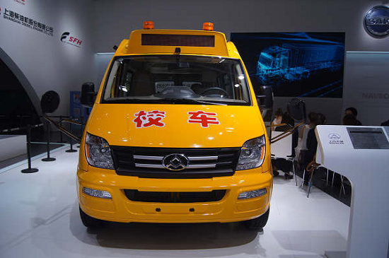 展出的大通校车也使用了V80车型,装有4轮盘式制动,在限速的要求下,最高车速仅为每小时80公里。校车最注重的自然是安全方面,从外观我们可以看的车的两侧和后侧一共贴了31块反光标志,车辆还采用了幼儿座椅,可容纳25人。车内装有可视倒车影像、车外监控摄像头等辅助安全装置。