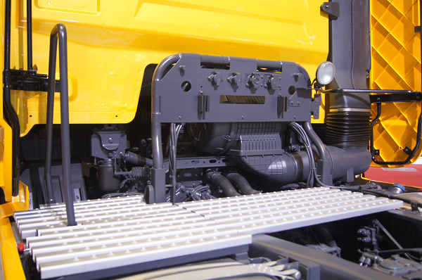 采用了组合式的导流罩和侧裙板,更有效降低风阻,提高燃油经济性。另外左侧裙板带有踏板,方便司机上落工作台。